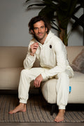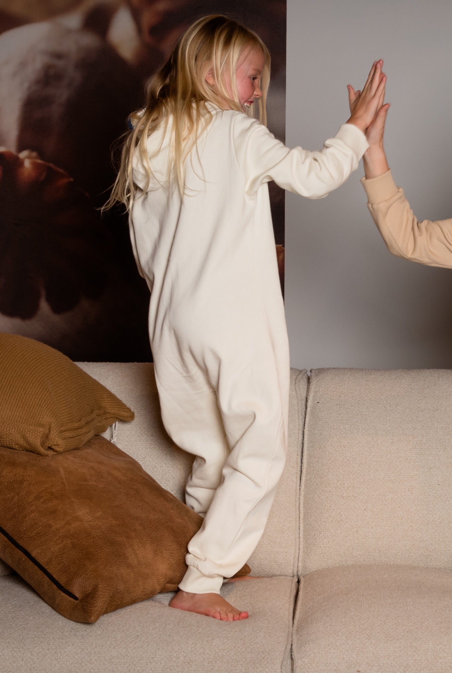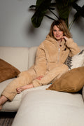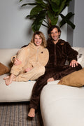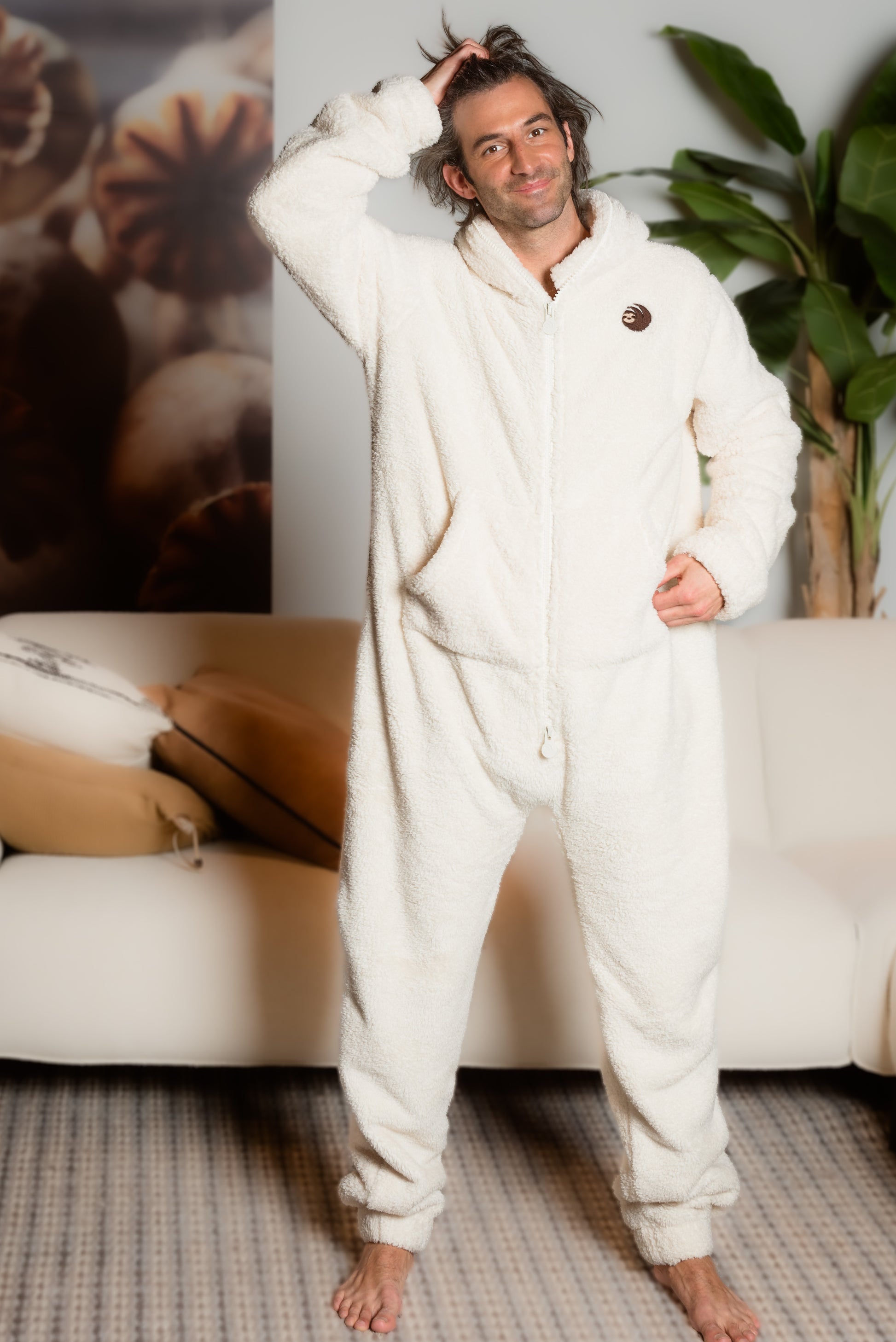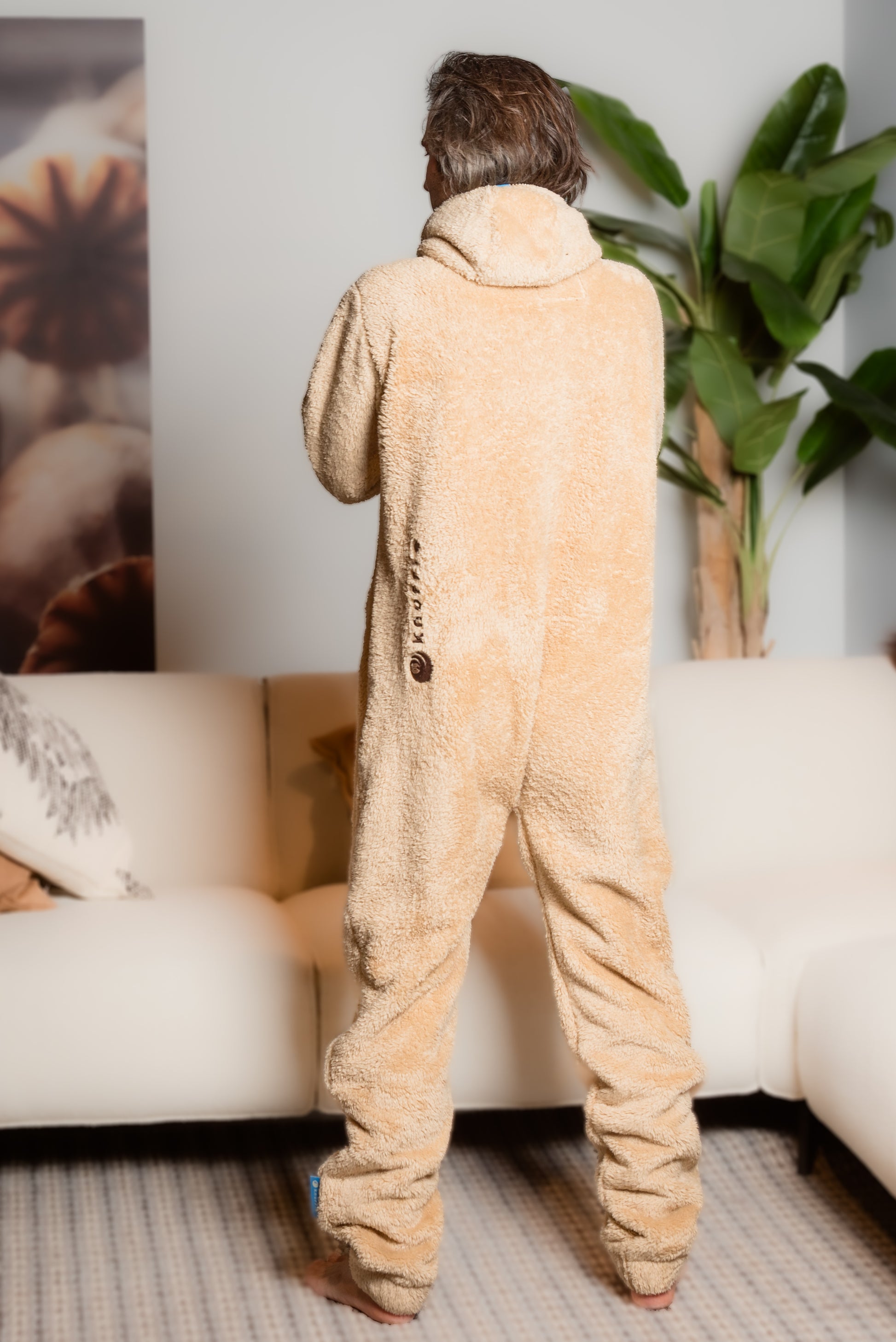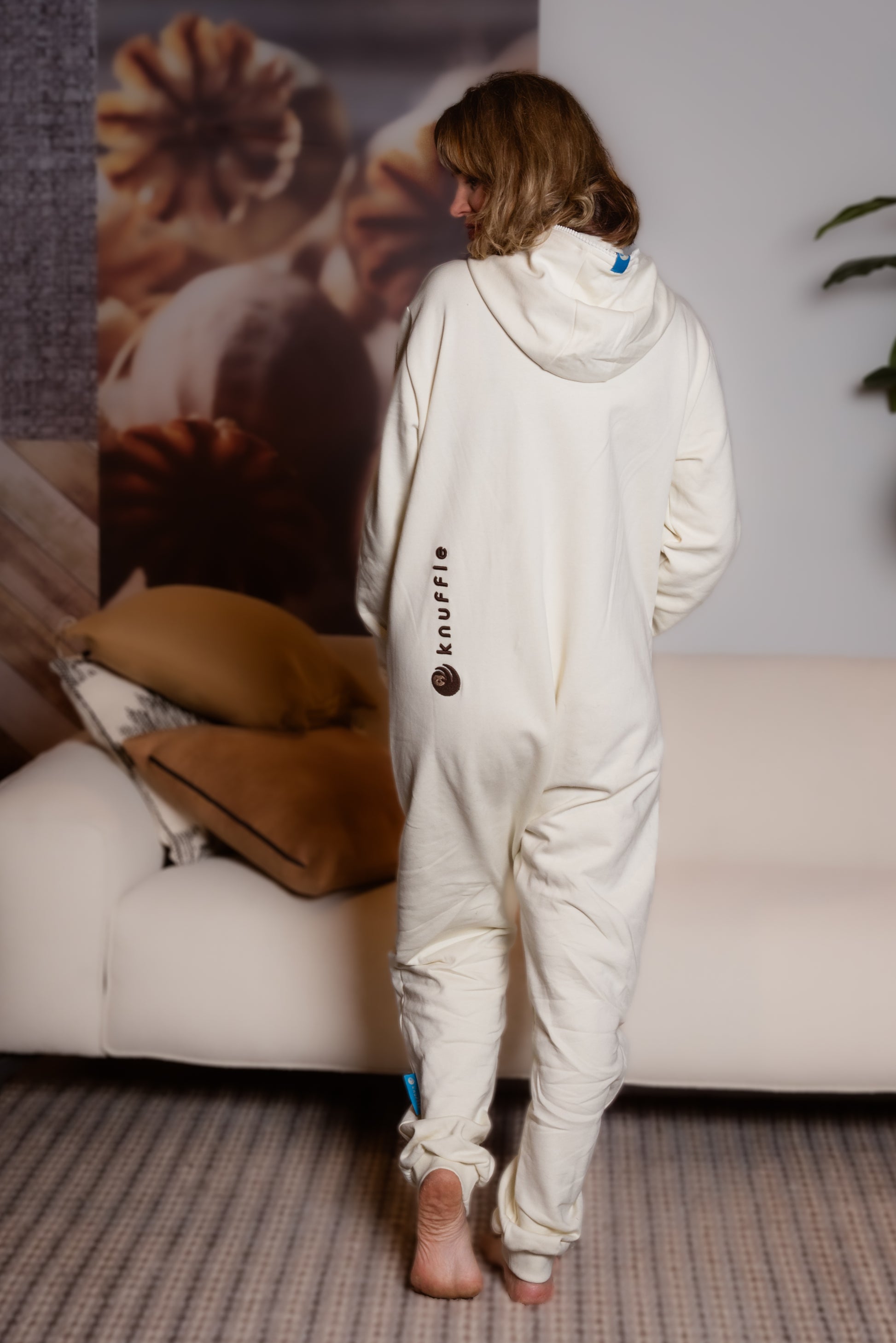 Der Knuffle Onesie hat ein Unisex-Design und ist somit für jedes Geschlecht und jedes Alter geeignet. Erhältlich in 2 verschiedenen Stoffarten. Wählen Sie den warmen und ultraweichen Fleece (doppelseitig, gleiche Weichheit außen und innen) oder den bequemen und stilvollen Jogging-Stoff (er hat normale Wärme, ist atmungsaktiv und mit einer weichen Innenschicht). Für beide Stoffe ist der Knuffle Onesie in vier beruhigenden Farben erhältlich: Beige, Braun, Champagner und Weiß.